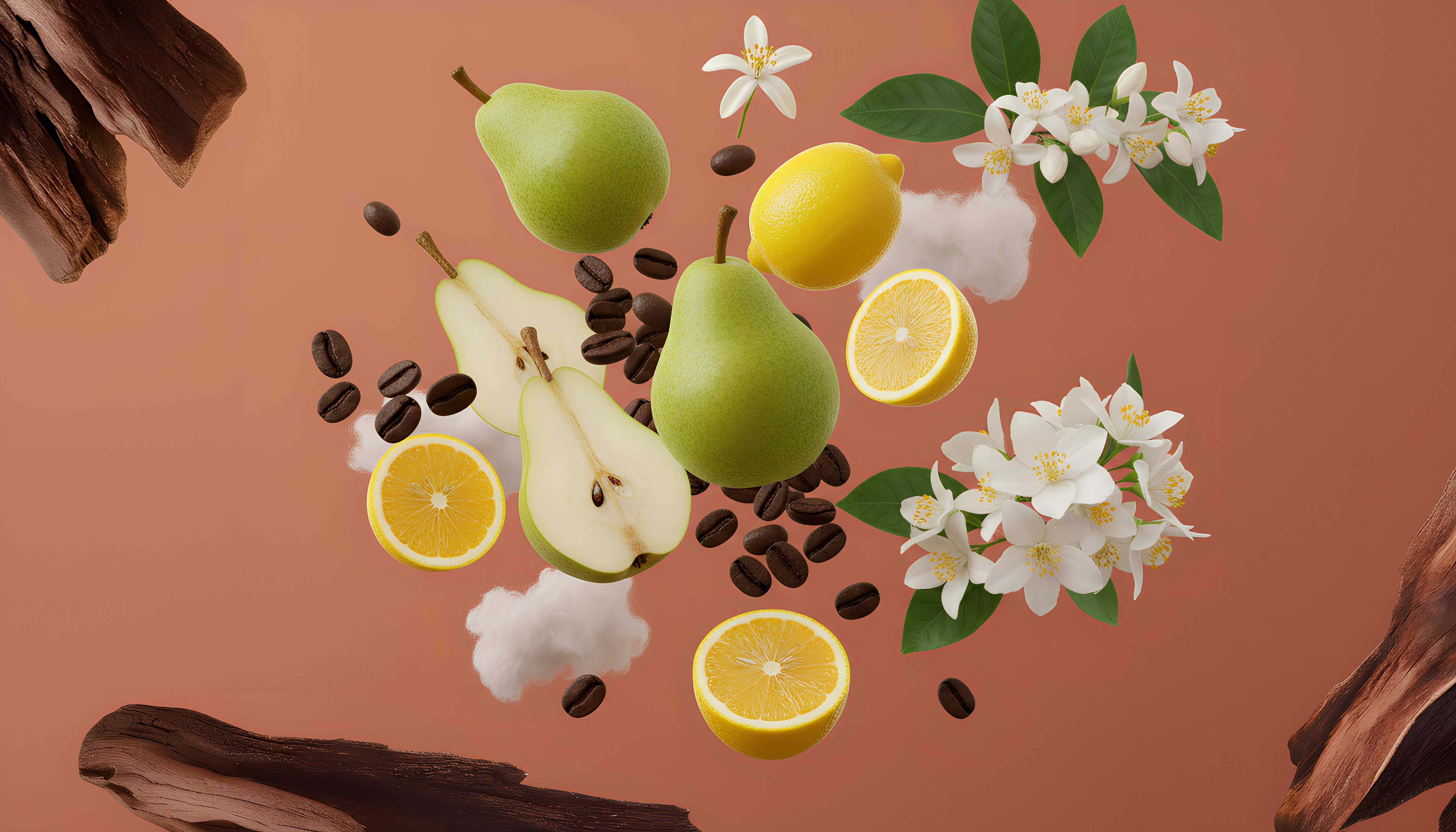 Topo: Pera, Café, Limão e Bergamota